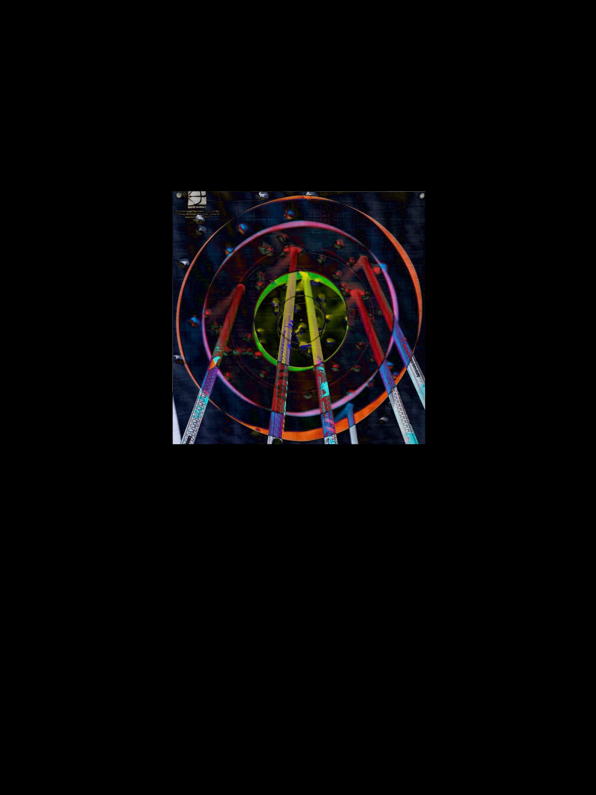 Und wie man sieht, sind sich die beiden Bilder zwar ähnlich, aber es gibt noch Unterschiede: Klar, die Pfeile sind auffällig, aber auch die Kreise passen nicht genau. Beim gelben Kreis gibt es oben und unten die Bereiche in grün, weiter Außen vier Bereiche in pink und ganz weit außen Bereiche in Orange, die zeigen, wo die beiden Bilder noch nicht passen. Um exakt zu bestimmen, wo der Pfeil genau getroffen hat, ist das noch nicht gut genug.