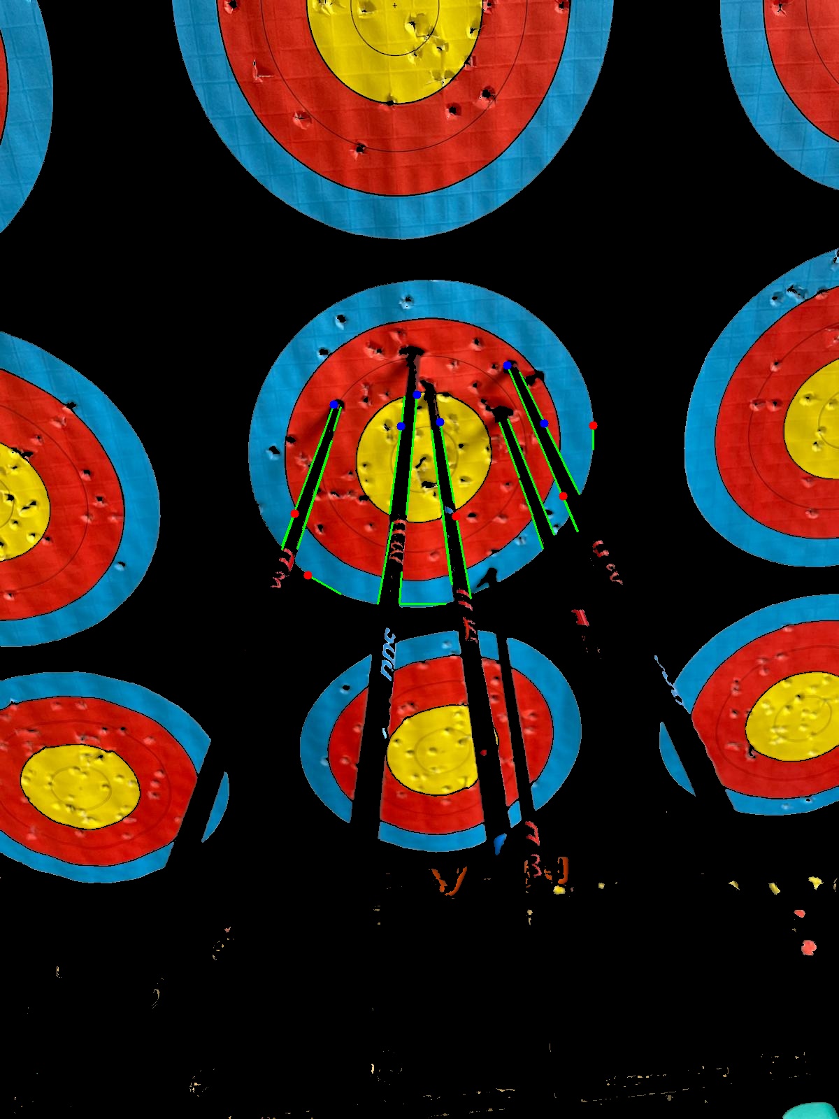 Um zu prüfen, welcher Pfeil wie viele Punkte gebracht hat, haben wir die blauen Punkte da gelassen und die Punktzahlen zu den Pfeilenden geschrieben. Funktioniert!